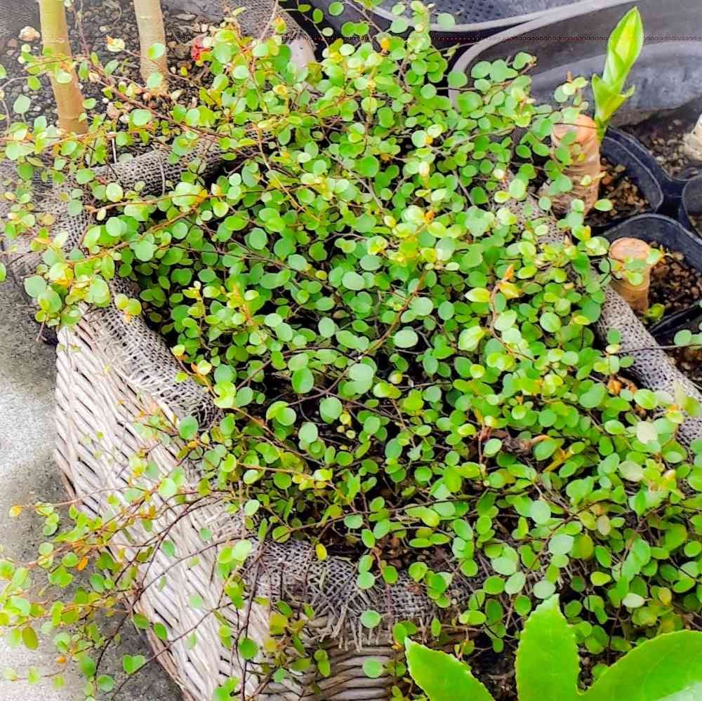 撤収したグリーンカーテンの下草にしてたワイヤープランツが大繁殖🌿🌿籠の側面からもツルが出てる😅