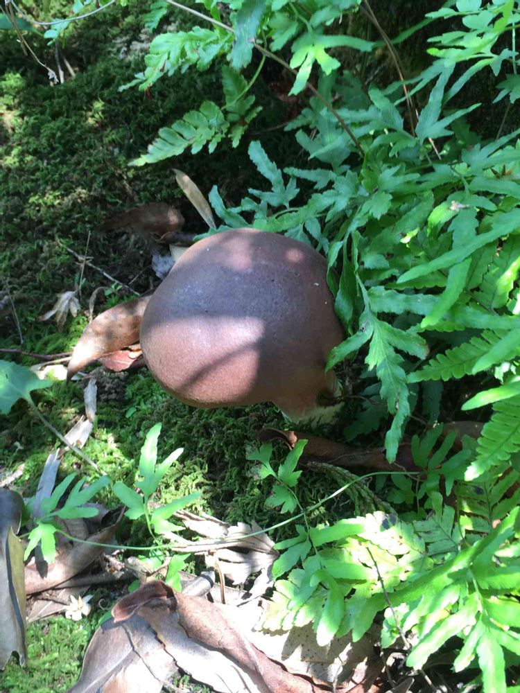 シダの中にキノコ