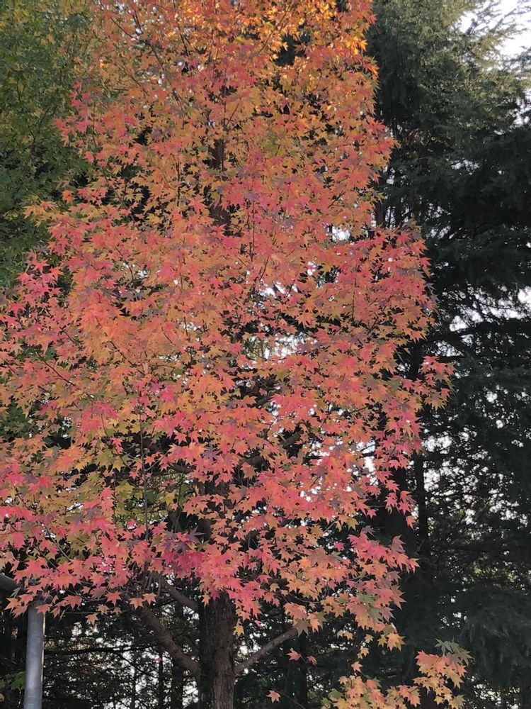 まだ緑の木の隣に この紅葉🍁している木があって 。同じ木なのにとても不思議でした
