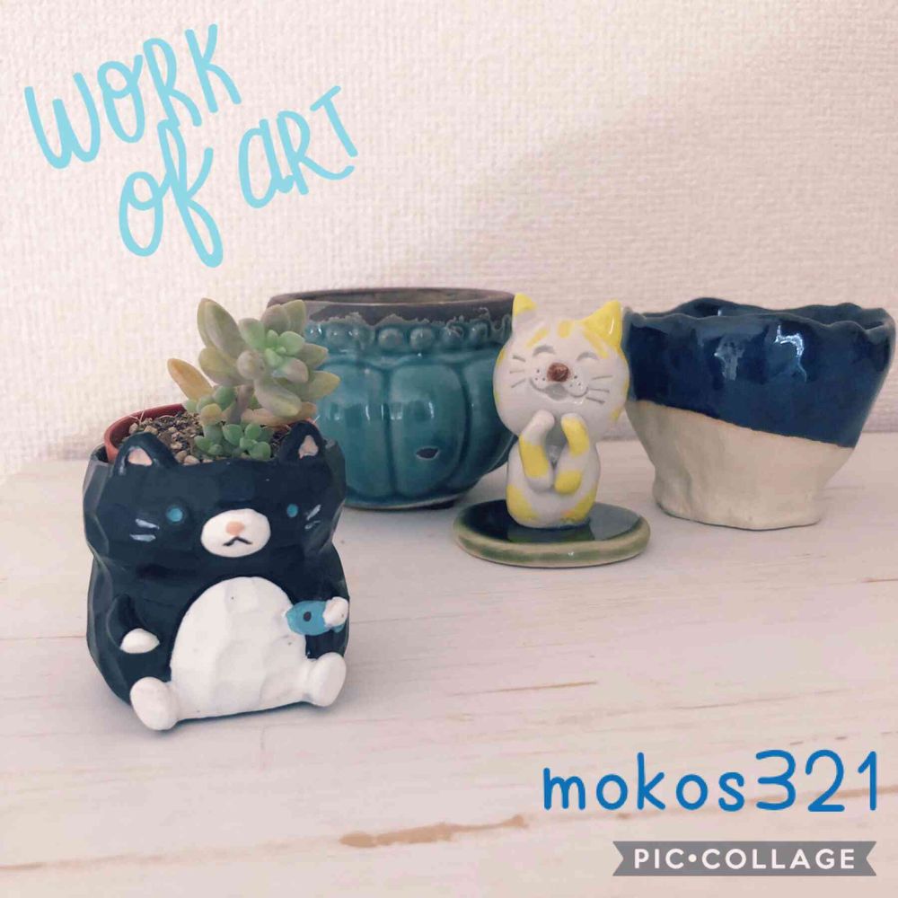 昨日Greenrabbitさんでgetした鉢と猫の置物(=ΦÅΦ=)∩ニャー