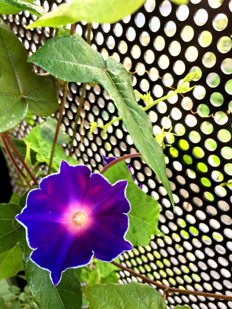 そんな中、朝顔『お銀』が咲きました。なんて濃いブルー!輪郭も白い縁取りでハッキリしてるのね。
