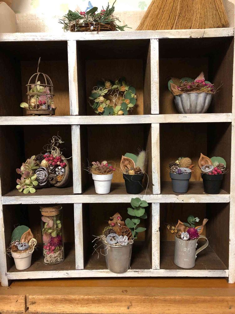 piminoki(ぴみのき)と言う屋号でイベントに出店しています。多肉植物の寄せ植えやリメイク缶などの販売と寄せ植えワークショップを行っています。