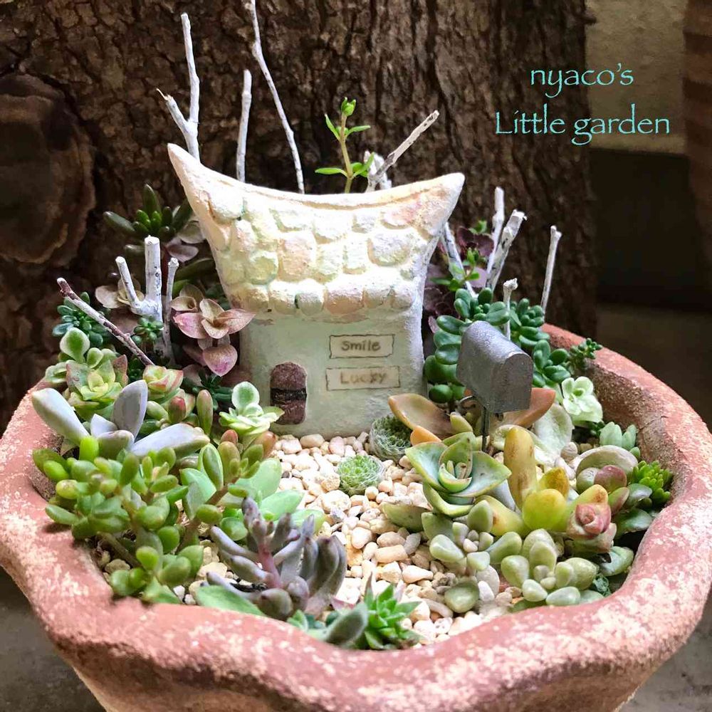 箱庭大好き❤かわいいですよ~(*´∀`)♪私はnyacoさんの箱には好きです( ≧∀≦)ノもしも私なら、よくセダム多目で使ってエケベリアや、背の高い子は、後ろへ持っていくのが好きです(*-ω人)