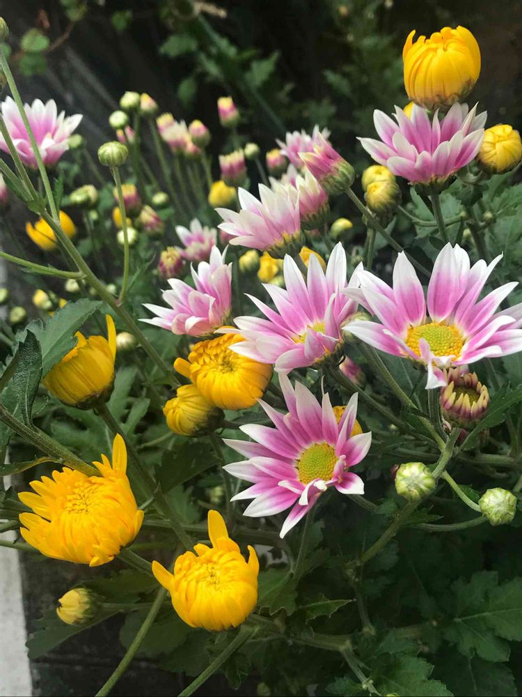 但し黄色の菊はひと枝に一輪の中菊か大菊の挿し木らしい
