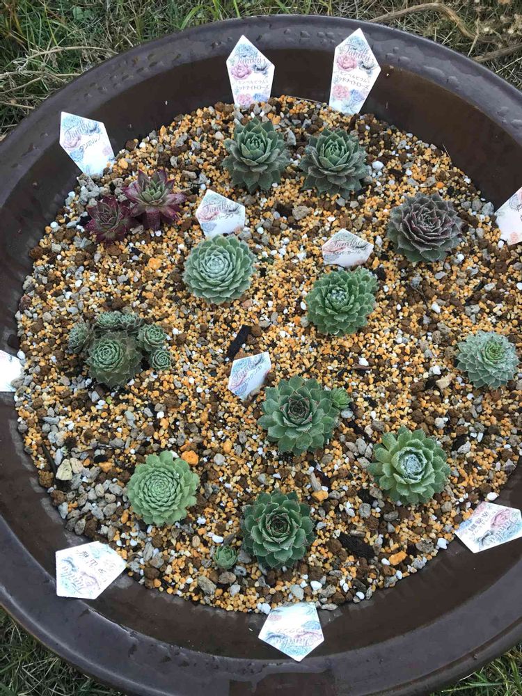 先日、寝ぼけてポチったセンペル達を植え替えて一纏めに…。ネームタグのせいか墓場の様ですww🤣🤣🤣