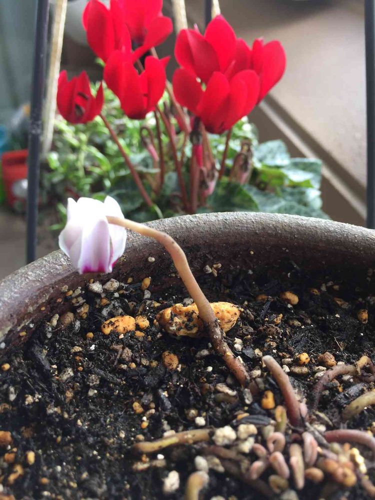 知らず 先日 ガーデンシクラメンの花を買いました。昨日のアドバイスを実行してみました。