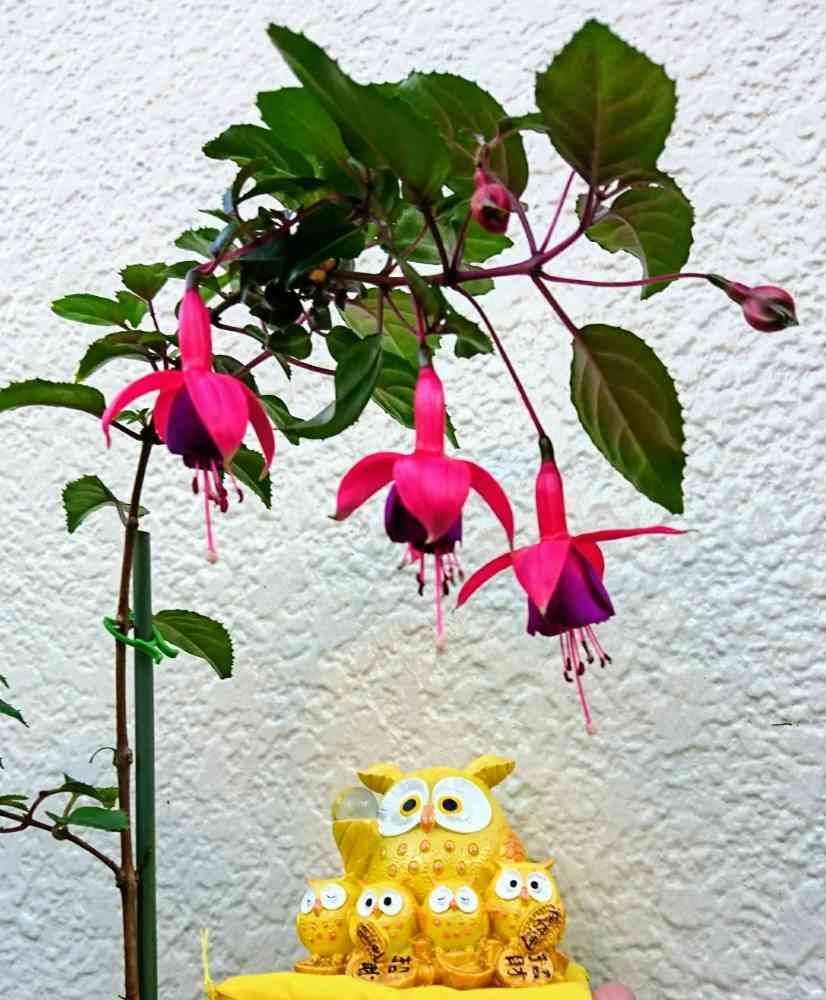 フクシアに梟🦉、福と不苦労でご利益倍増‼️ 拝まねば🙏 皆さんが幸福でありますように‼️
