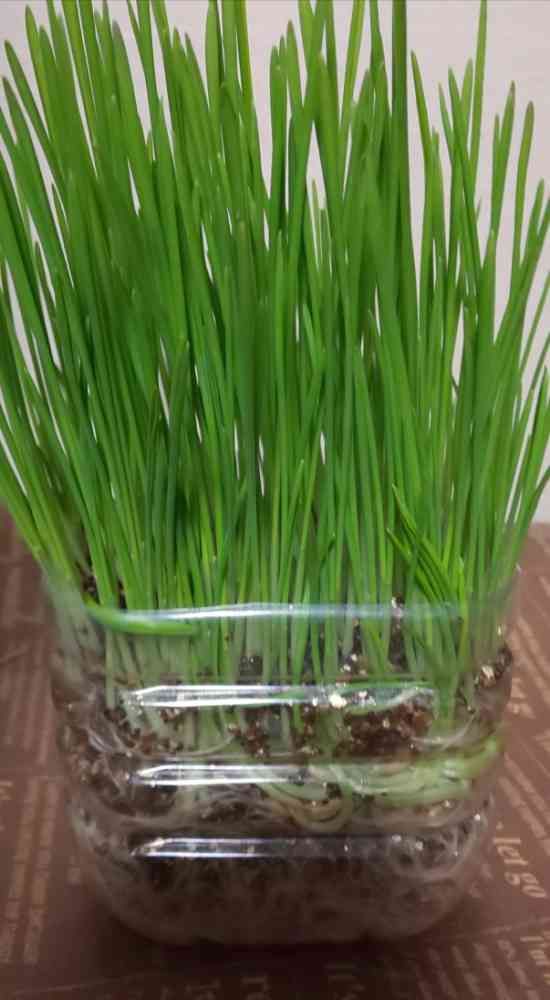 ペットボトルの廃品利用で猫草を育てていますが、何が楽しいって透明だから根とか芽とか、成長具合が見えるところですね。