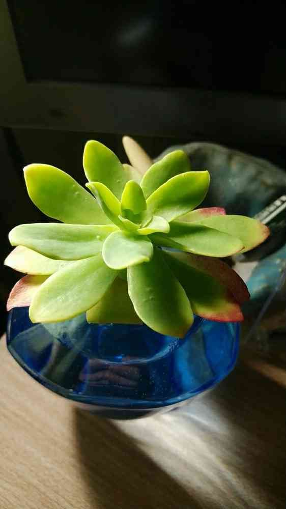 応急手当でメネデール溶液に挿し、ひとまず窓際の席へ