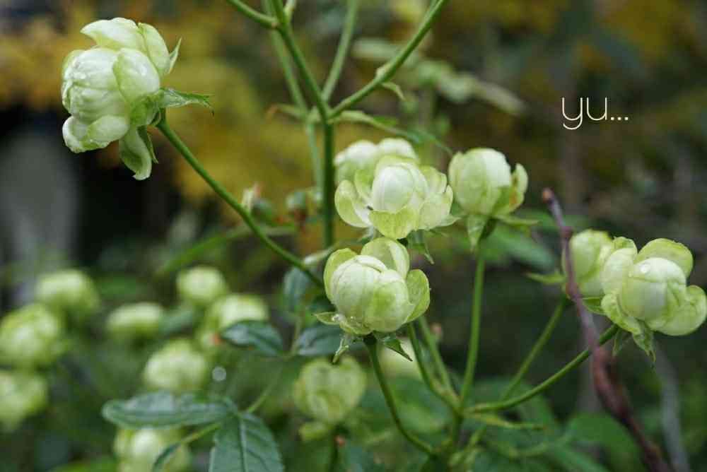 薄いグリーンの花びらが、プクンプクンと丸まった小さなバラさんです。🌹