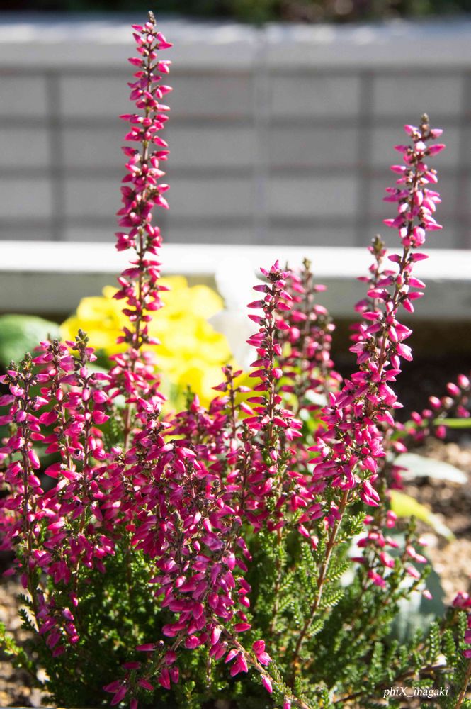 半地下のオアシスの丸屋根の下で植え込みにカルーナがカワイイ花を付けていました。咲く寸前と思われます。まだツボミのようです。