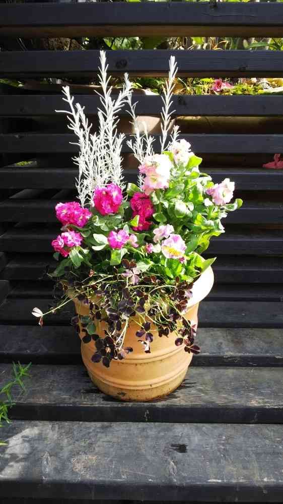 たまたま寄せ植えたら、今日の花🌸ストック😆