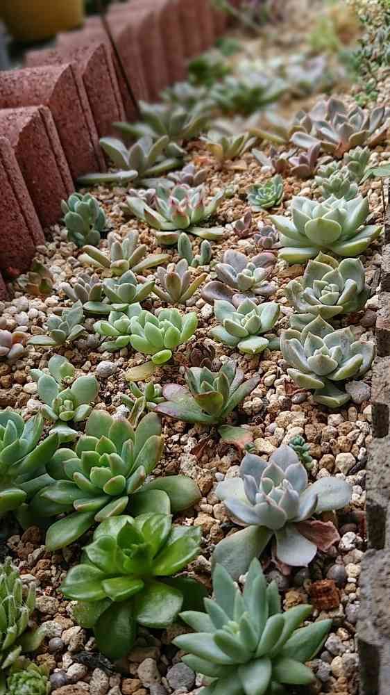 軒下部分はエケベリアを。ゆったりめで植えて様子見です。日当たりがさほど良くないので徒長しないか心配です。