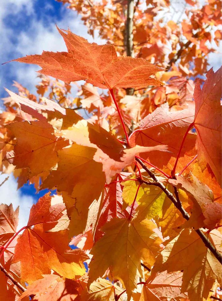 青空に映える紅葉🍁、綺麗な葉っぱ🍂ですね〜