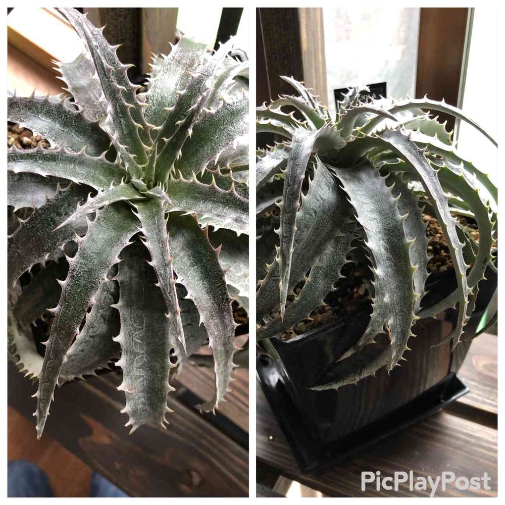 コメントいただいたのはこの子ですね😁親株サイズで、かっこいいですね〜😄種類は残念ながら、完璧にわからないタイプです。一般的なディッキアの特徴の範囲内ですので、僕ならDyckia hybrid.と表記します。