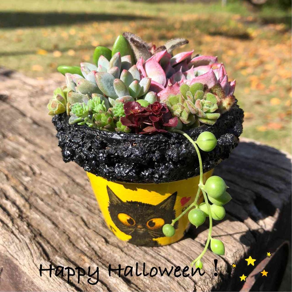 締めは、容舞后ちゃんの2018ハロウィンリメ鉢に、bizarreさんで買った多肉を寄せ植えしちゃいました♡鉢が可愛いので、すっごく悩みに悩んでこんな感じに😊