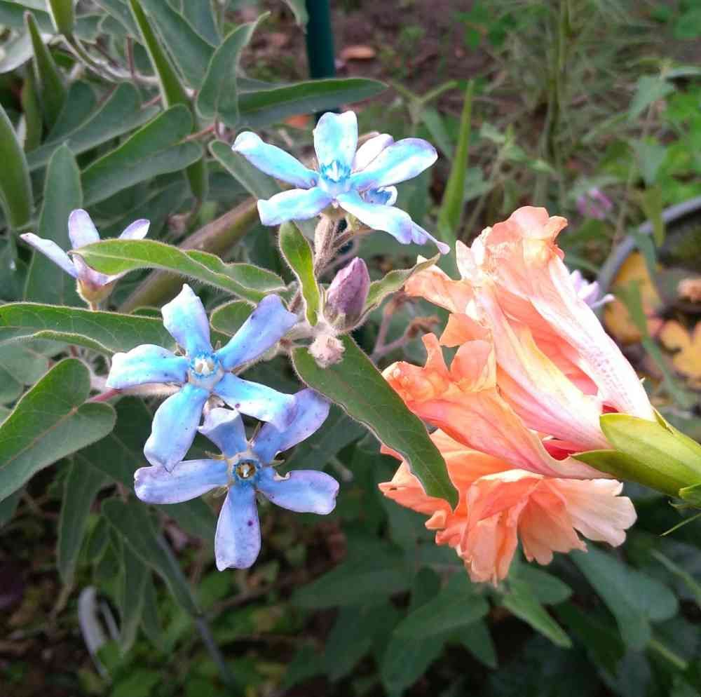 ハイビスカスまだ咲いてるんだ〜(´∀︎`●︎)ブルーのお花とコントラストが綺麗だね!☆︎・゚:*(人´ω`*)