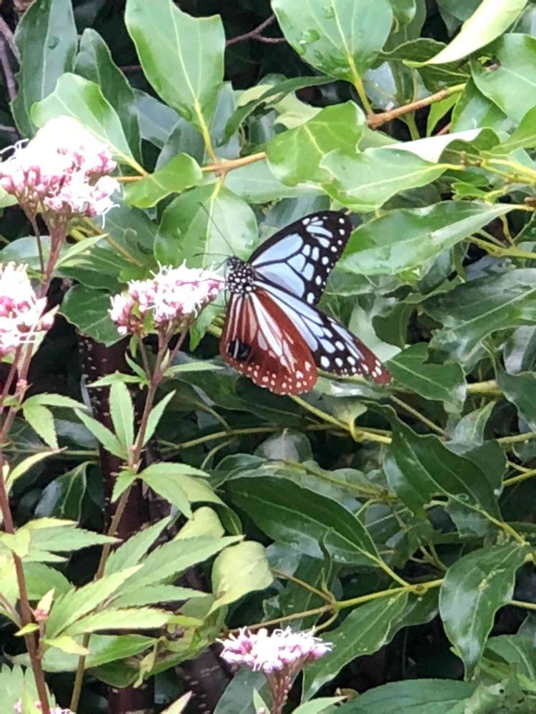 フジバカマの蜜を吸いに来たアサギマダラ。数千キロも旅をするチョウ🦋なんです。ゆっくりして行ってね ー