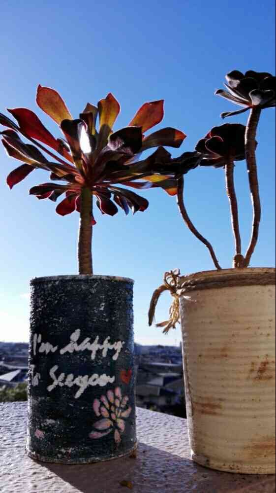 パープルちゃんの、デニム缶だょ😁💕多肉の成長がヤバイ😱💧