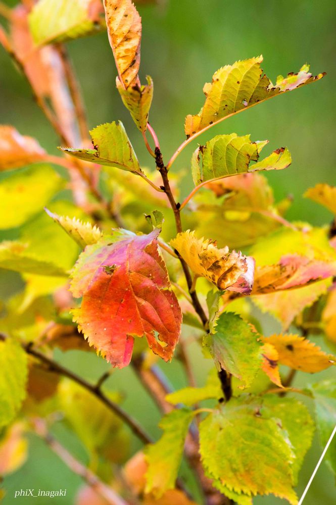 急に朝晩の冷え込みがキツくなってきました。すると一気に紅葉が進みました。このサクラも所々がとくに鮮やかに染まって綺麗でした。