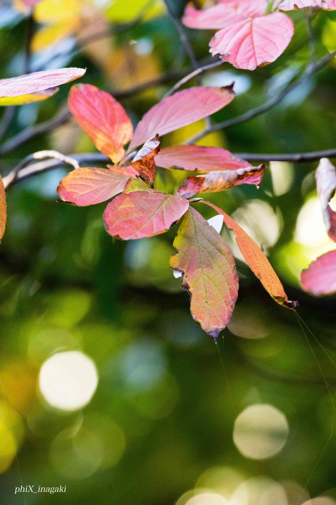 すこし日暮れに近づいた16時頃です。サルスベリの赤い葉が光の差し込む光に浮き立って見えました。