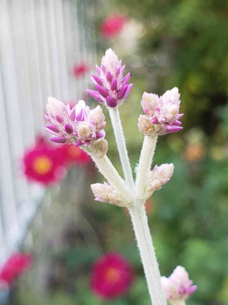 アルテルナンテラ若紫がぐーんと伸びて、コスモスを見下ろしながらまたお花をつけ始めました😄