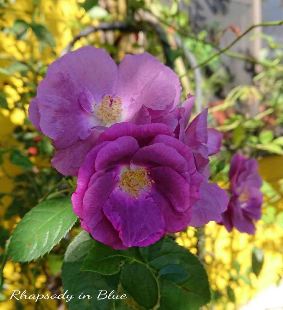 風の当たらない東側でラプソディインブルー🌹夏の枯れ木込みからしっかり復活🙌 蕾もまだまだ🎶