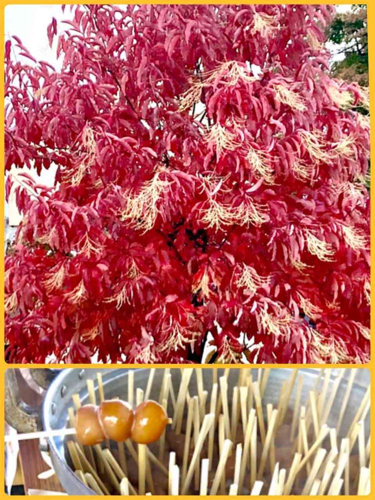 アツアツを頬張りながら😁綺麗な紅葉🍁