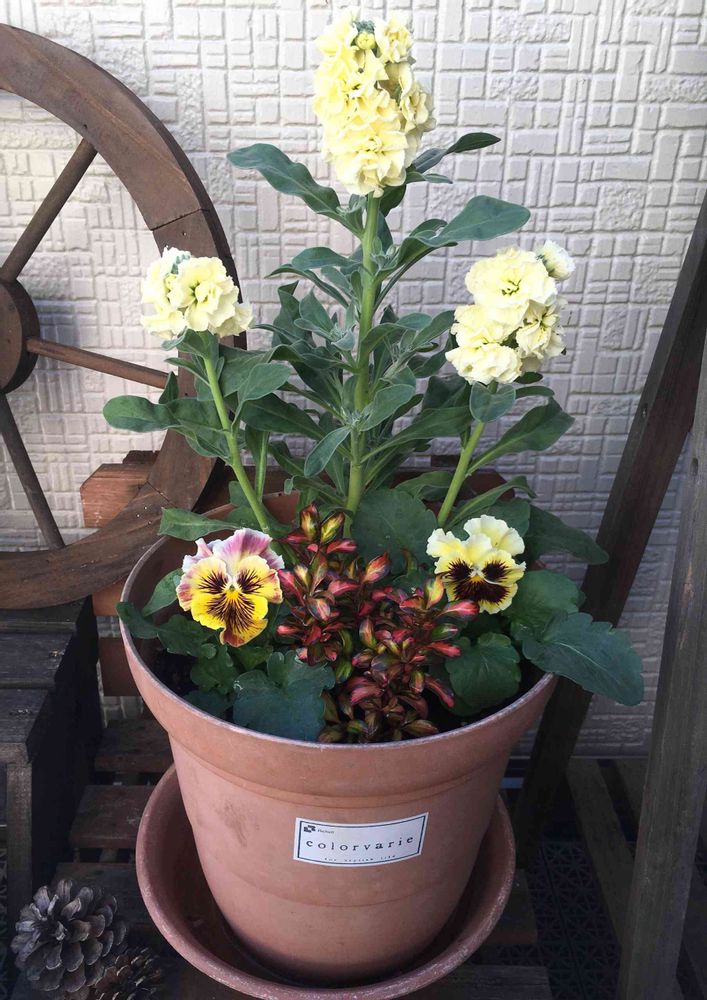 バルコニー/ベランダ,パンジー,八重咲きストックの投稿画像