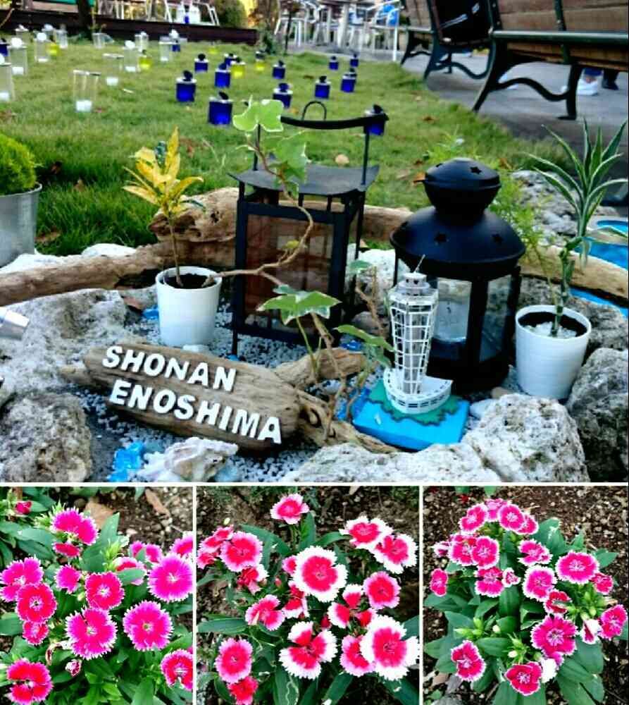 上…点灯待ちのミニチュアシーキャンドルの写真スポットと芝生のキャンドル❤