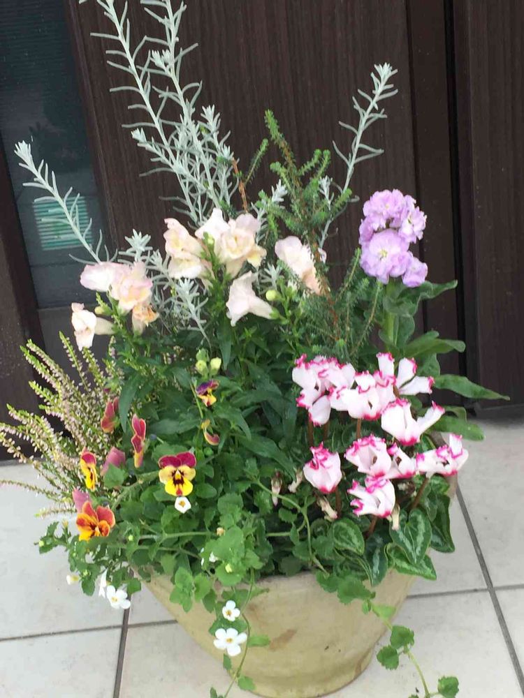 おかんさんのガーデンシクラメン,ビオラ,八重咲きストックの投稿画像