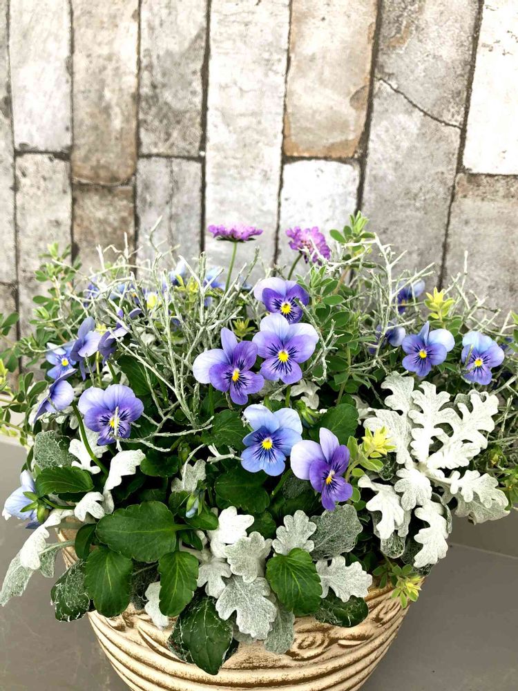秋の寄せ植えブルー💙清々しい〜だなんて、ありがとうございます😊 早朝は、まずビオラ元気モリモリで、こちらも元気もらいますね✨