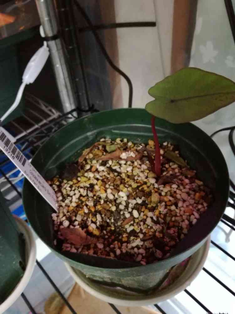 輸入したコロカシアのうちほとんどが葉も茎も腐り落ちていて、どうしようかと思ったけど、どうにか温室で復活!赤茎鮮やか!