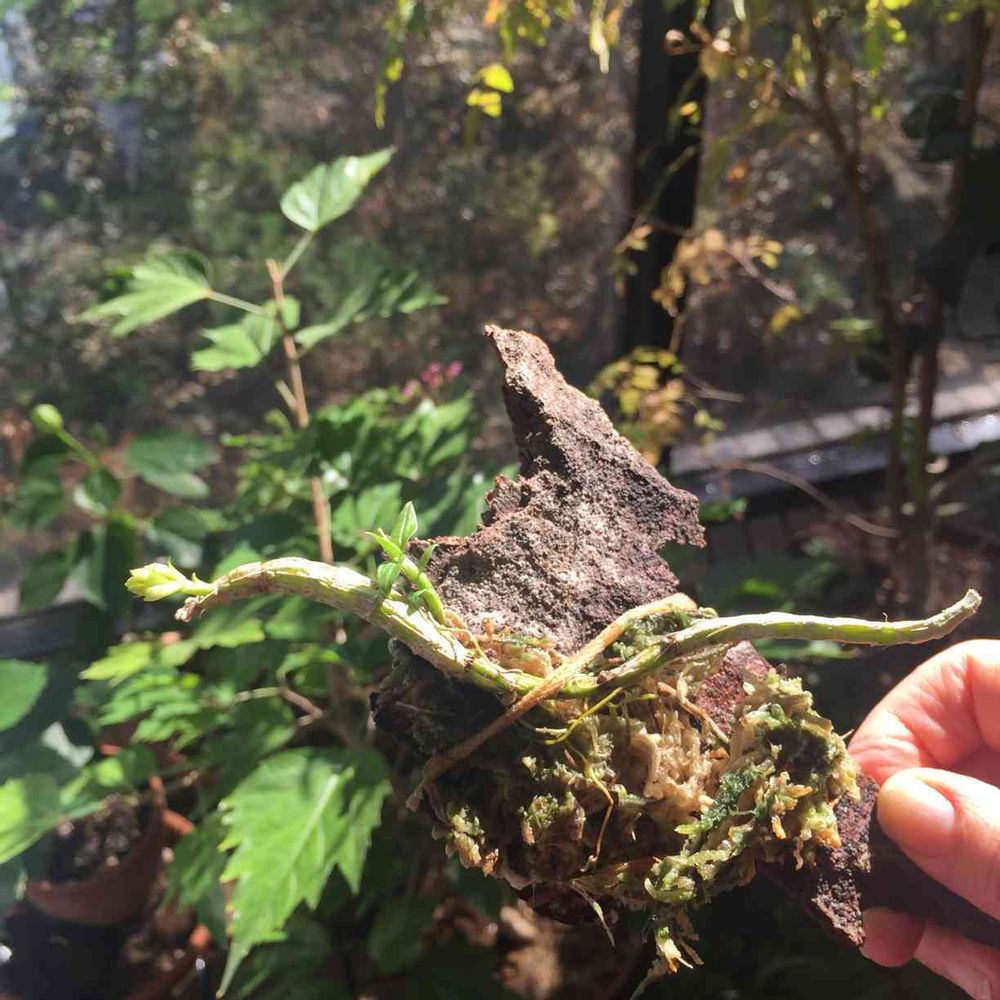勿体ないので適当な木っ端に括っておいたら、着生もしっかりしてないユルユル。