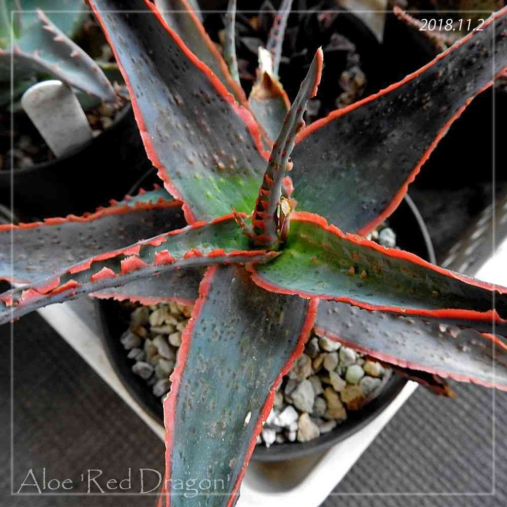 アロエ、レッドドラゴン。赤い縁取りが冴えてる。
