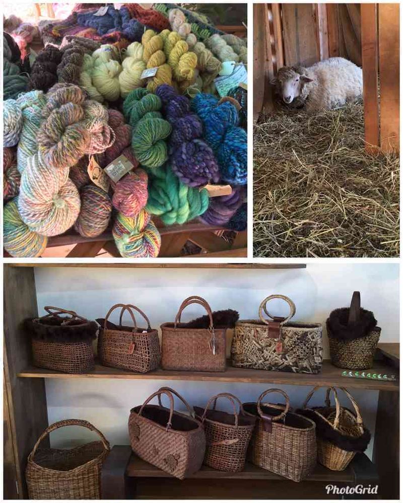 きれいな色でしょう。100%ウールです。とにかくすぐそばに羊がいるんですもの。40代女性の作家さん。羊の毛を刈るところから手編み小物までの過程をやるのですから…驚きです❗️
