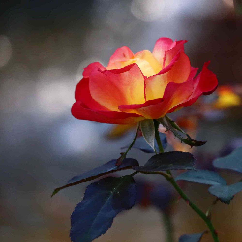 玉ボケ、バラの花弁のグラデーションが