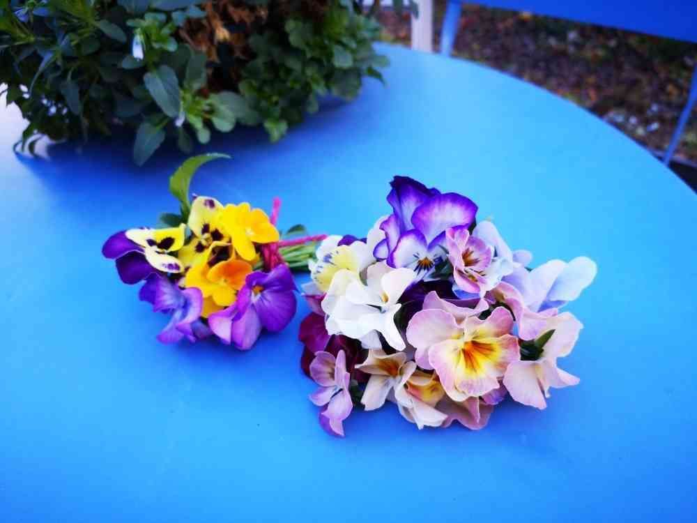 摘み取った花を花束にして