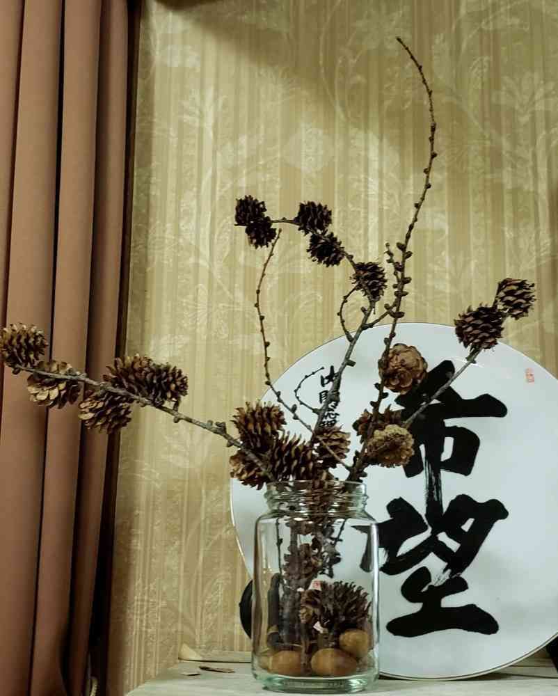 先月(10月7日)奥日光の散策で拾った落葉松の実を活けてみました。