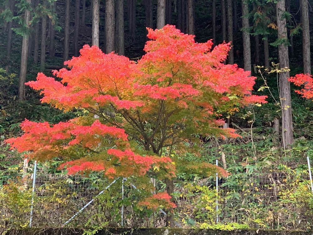 なんてったって母ご自慢の紅葉スポットですから😅昔、父と2人でどこかの山から小さな苗を拾ってきて植えたのが偶然真っ赤になるのだったみたいですよ😊