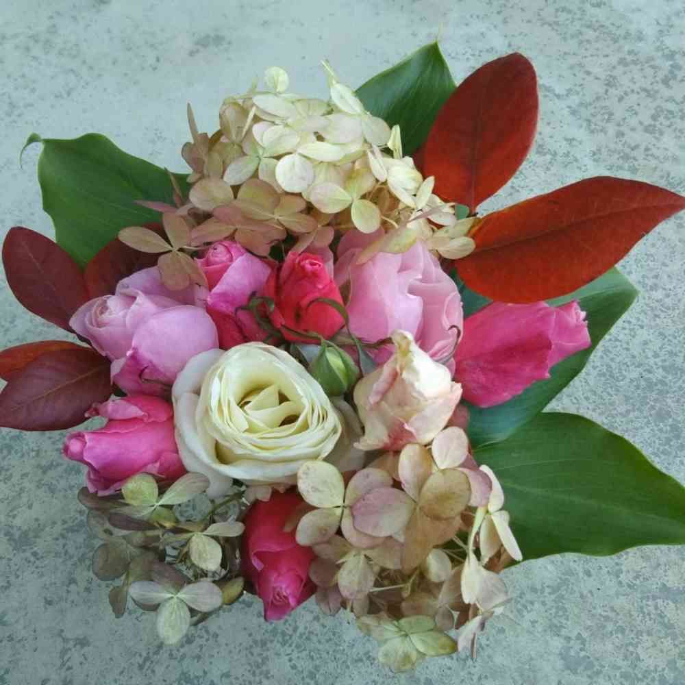 秋色の葉と紫陽花と薔薇がいいですね!💐😊