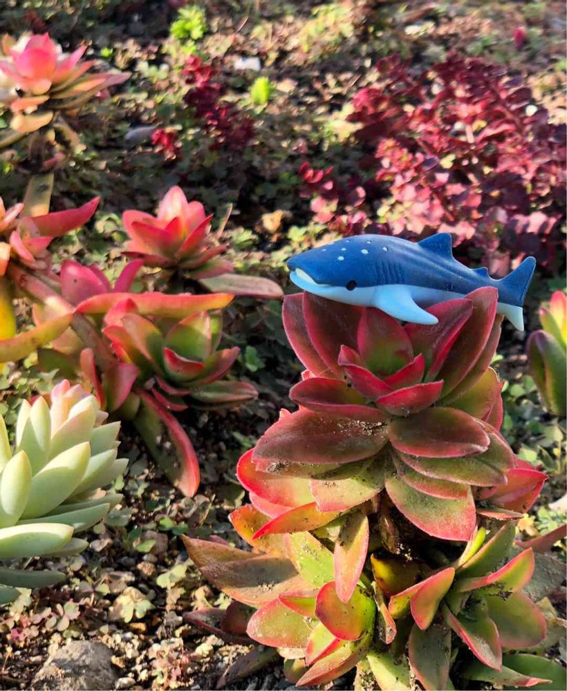 ジンベエ🐋の後ろに見える多肉ちゃんもキレイに紅葉してるね╭( ・ㅂ・)و ̑̑ グッ !
