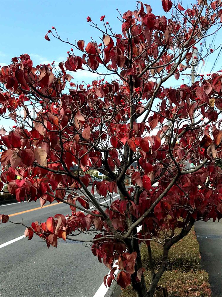 ハナミズキ通りってあるんですね。赤い葉っぱと赤い実癒しですね🤗💕💕