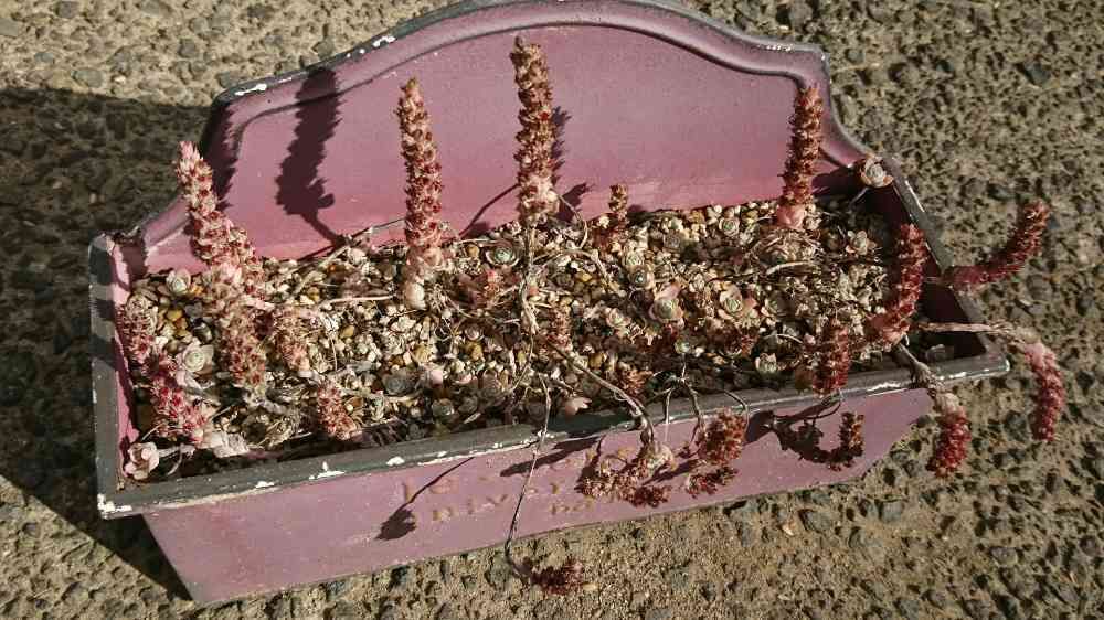 どの子持ち蓮華の鉢もお花が終わりを迎えており