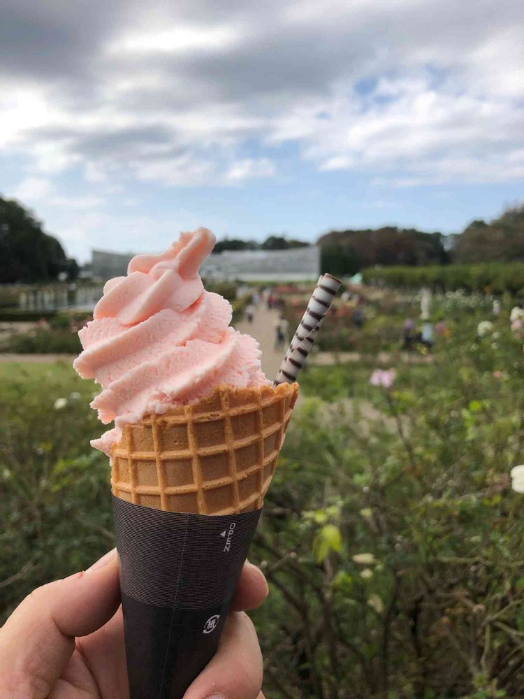 5月のバラの季節も行って、バラの🌹ソフトクリーム食べました😊