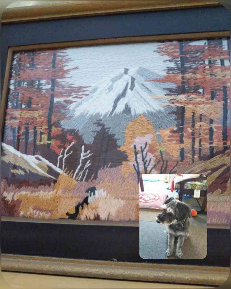 さん。ありがとうございます(≧∇≦)bワンコは控えめに参加です。独身の時はもっと大作作りました。祖父の家🏠の新築祝いに欲しいと言われて、この作品の倍以上のもチクチクと刺しました😊期間がいつまでと決まってたのに、中々おわらなくて夢にまで出てきた事を思い出しました😂今じゃ良い思い出ですが・・・