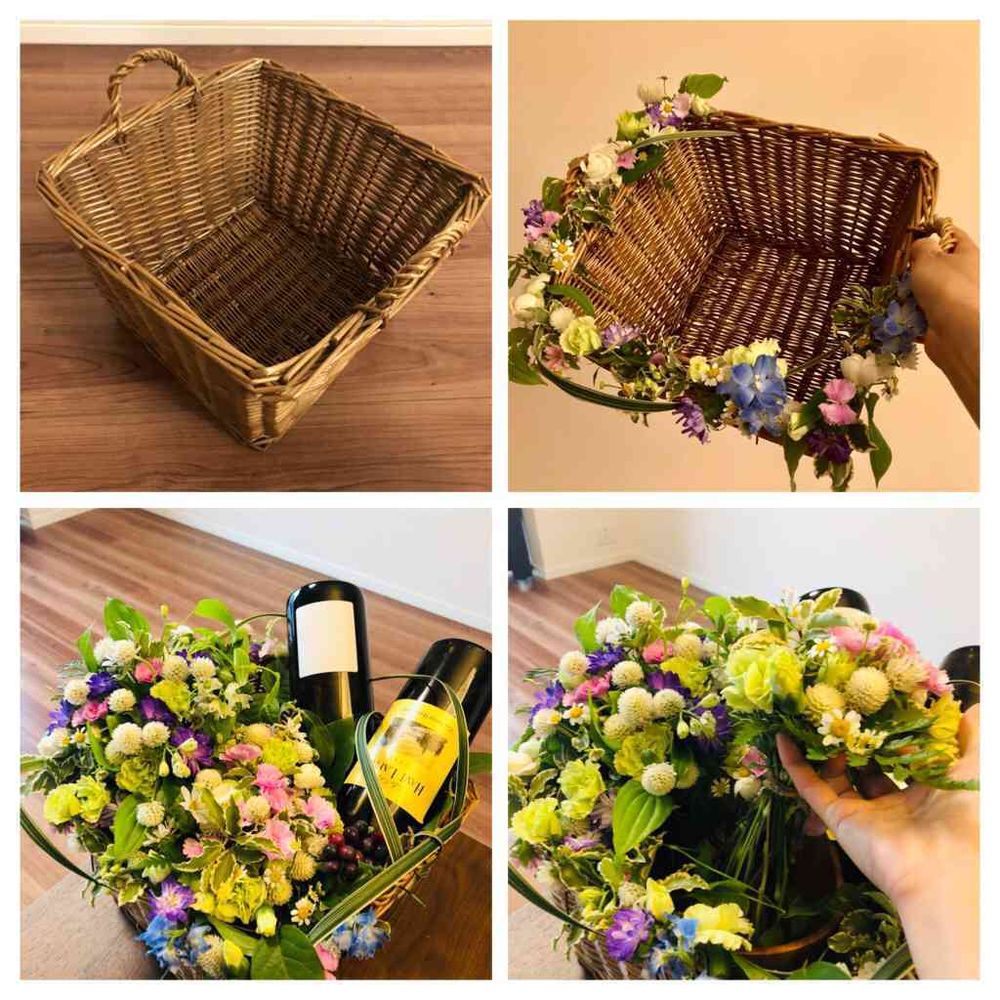 バスケットアレンジメント,現実逃避,レッスン残り花材の投稿画像