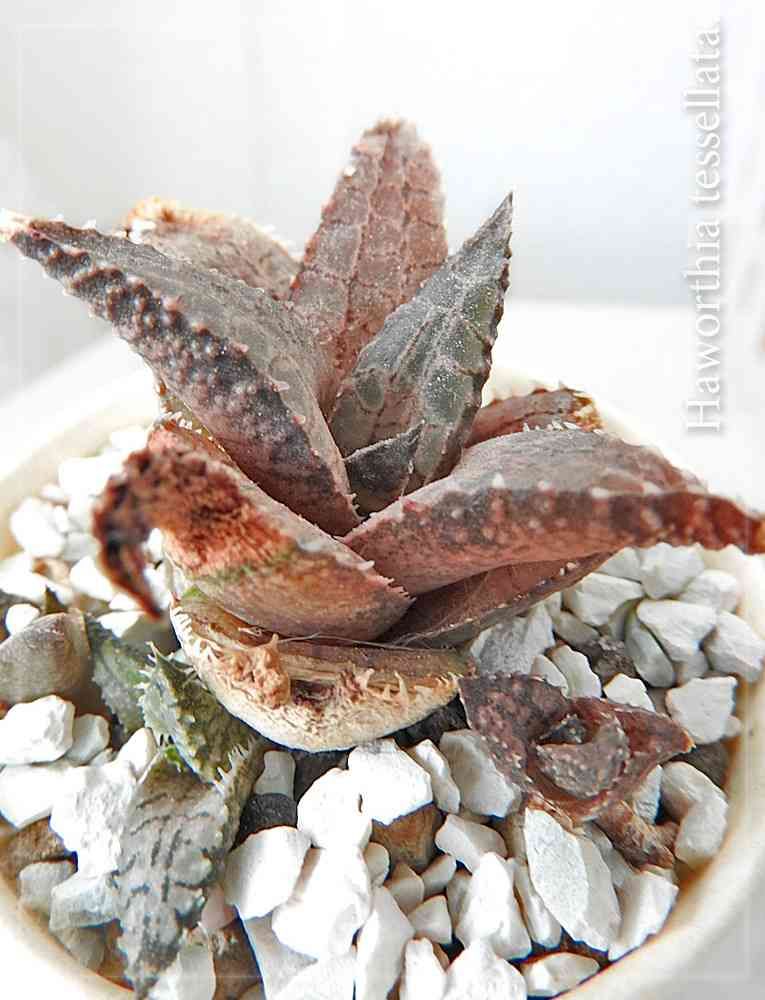 我が家にやってきたときからこんな色あいのハオルチア・竜鱗。 すぐに緑になるさーとおもっていたら、そうならないどころか、うまく育てられなくて、下葉も枯れて一回り貧相になってしまいました。