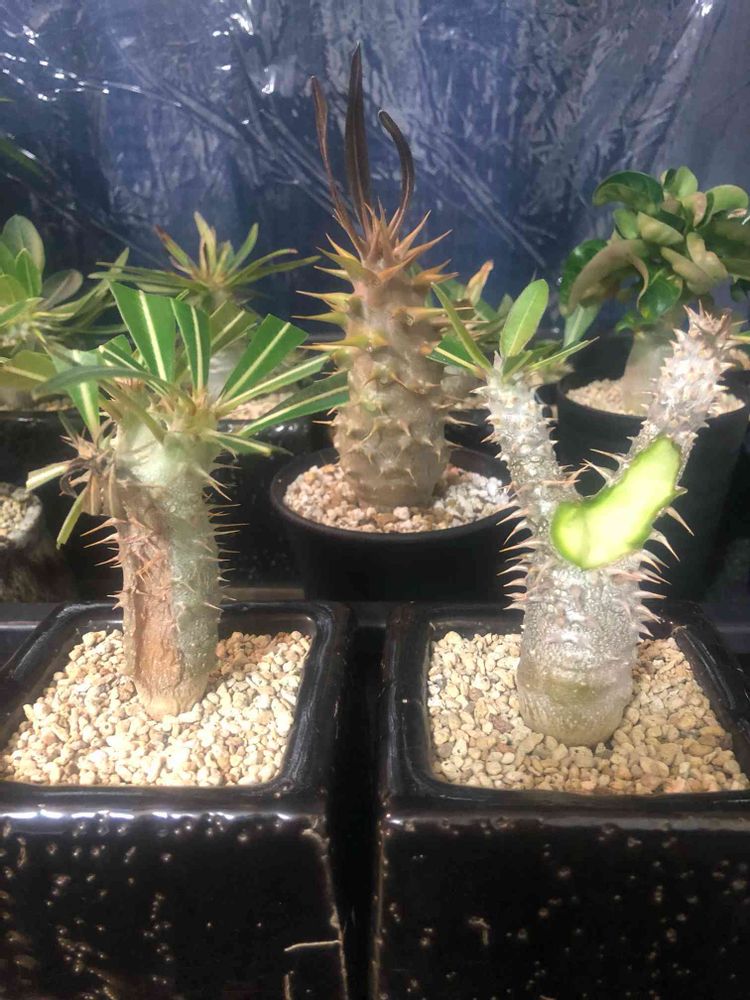 先日投稿した萎んだパキポディウムたちのその後です。10株ほどありますが背が高い株だけが全部弱ってしまいました。