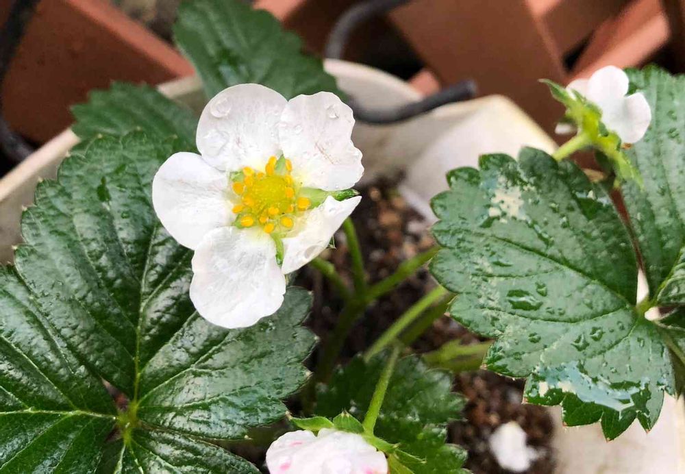今まで、実🍓のほうばかり気になっていましたが、お花もきれいですよね